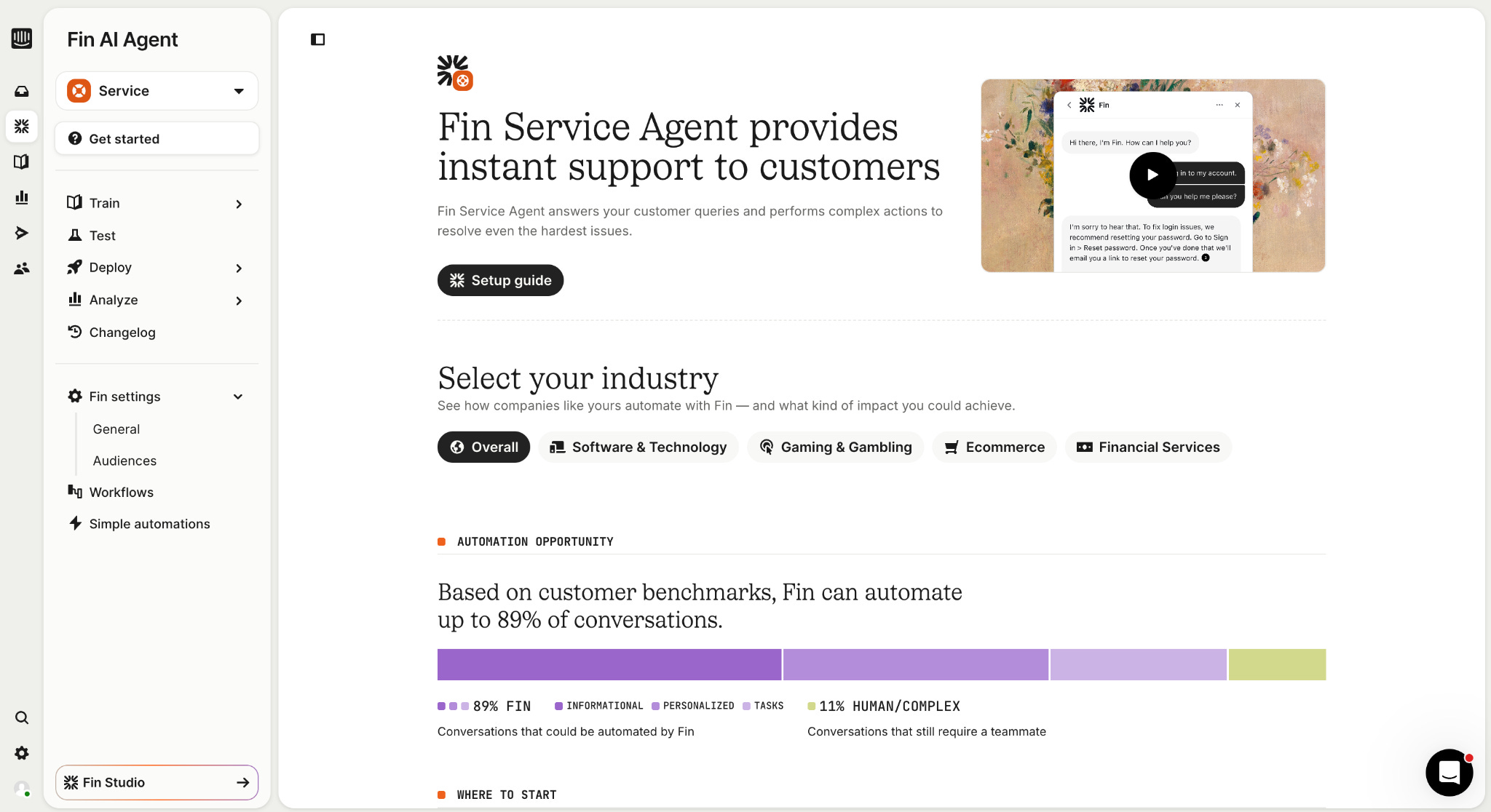 Some configure Fin mostly inside Intercom: Workflows, routing, articles, canned replies, and outbound messages.